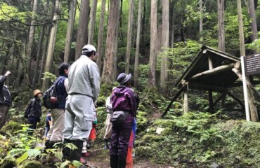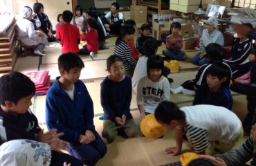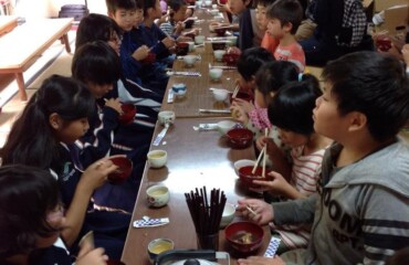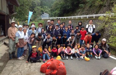 トチの実拾いも5回目、今日は上林小中学校の子供たち28人が来てくれました。増水した川を無事渡り、30分山道を歩いてトチの森へ。元気いっぱいでトチの実を拾い、73キロ収穫してくれました。公民館に戻り、3班に分かれて3人のおばちゃんから昔の生活や今の仕事など古屋の話を熱心に聞いていました。最後に自分たちで作詞作曲した「上林(ふるさと)の歌」歌って、感謝の気持ちを伝えてくれました。3人のおばちゃんたちはひ孫のような子供たちの温かい気持ちに、「涙が出そうになった。これからも頑張らなければと元気をもらった」と、大変喜んでいました。トチの実拾いの様子は、NHKの「京いちにち」、午後8時45分からのニュースでも放送されました。