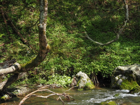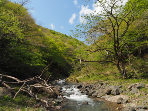萌黄から新緑へ。それほど透明度は高くはありませんが取り合わせの風景はお気に入りです。