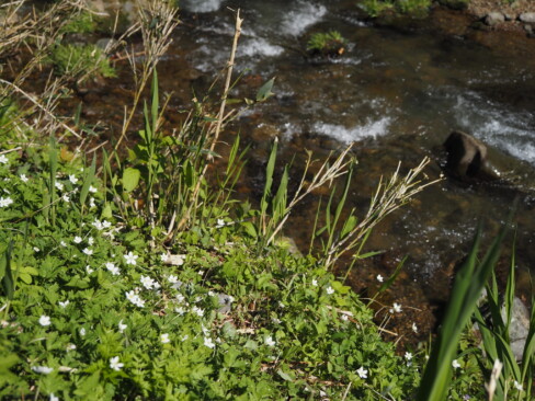 ニリンソウの群生地があって感動ものの場所ですが今年は終わりかけでした。それでも川のせせらぎと鳥のさえずりを聞いていると時間があっという間に過ぎてしまい、ずーーっと留まっていたいなと。