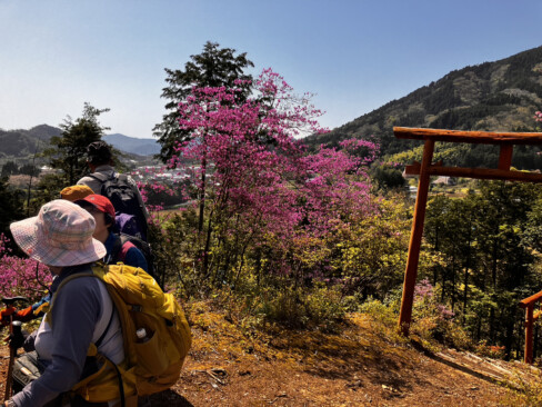 初夏を思わせる、汗ばむほどの陽気となった4月14日。ミツバツツジの群生地として知られ、綾部トレイルのルートの一つとしても紹介されている綾部市小畑地区を訪ねました。 穏やかで美しい里山の風景が広がるこの地区では地元の方たちの努力で小畑城址や宮ヶ岳を中心とする登山道の整備などが進められています。
