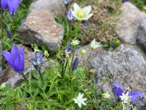 乗鞍岳とその周辺の高原には、たくさんの高山植物が咲いています。高山植物の女王「コマクサ」をはじめ、ウサギギク・イワギキョウ・イワツメクサ・ウメバチソウ・チングルマ等々、様々なお花たちが迎えてくれました。