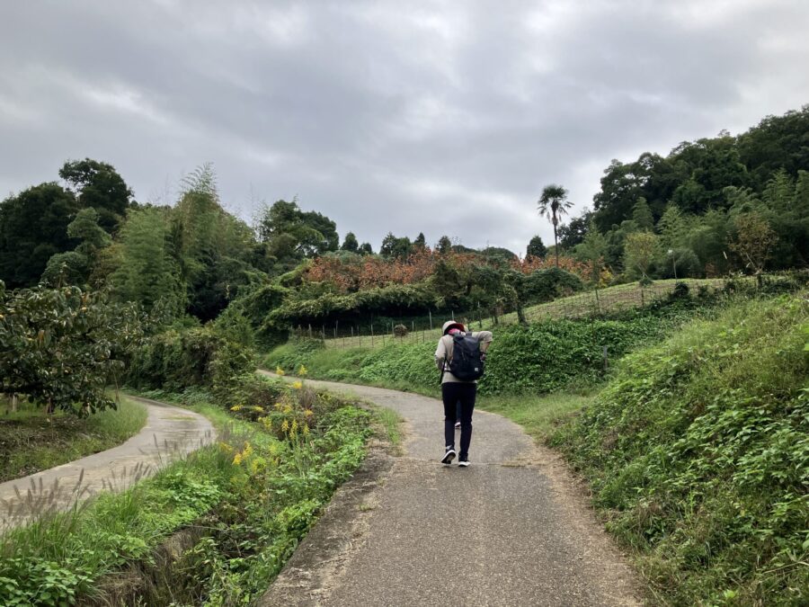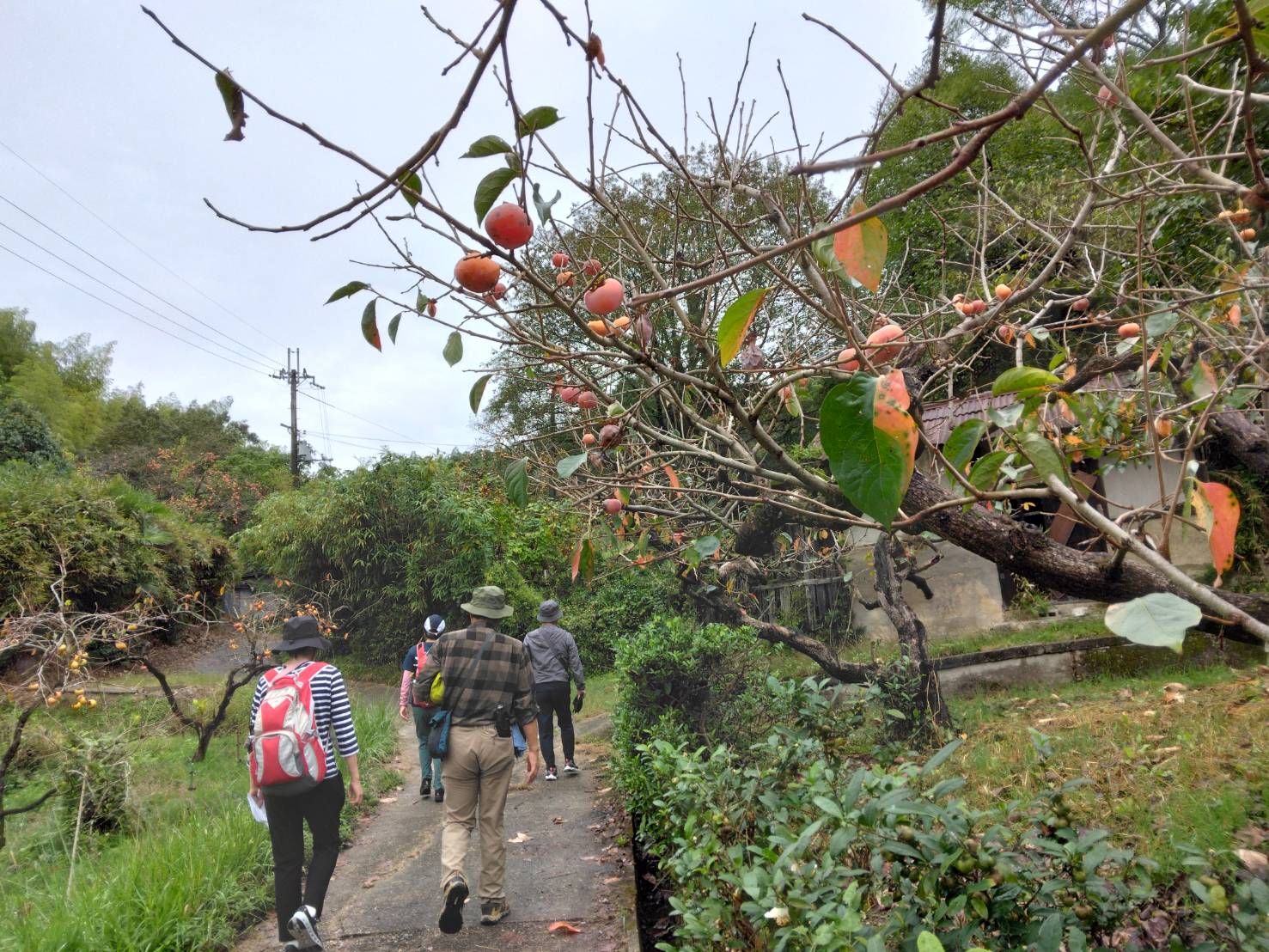 鈴なりの柿やみかん、可憐に咲くコスモスの花など、人の営みと共にあるこの道には山里の静かな時間が流れていました。