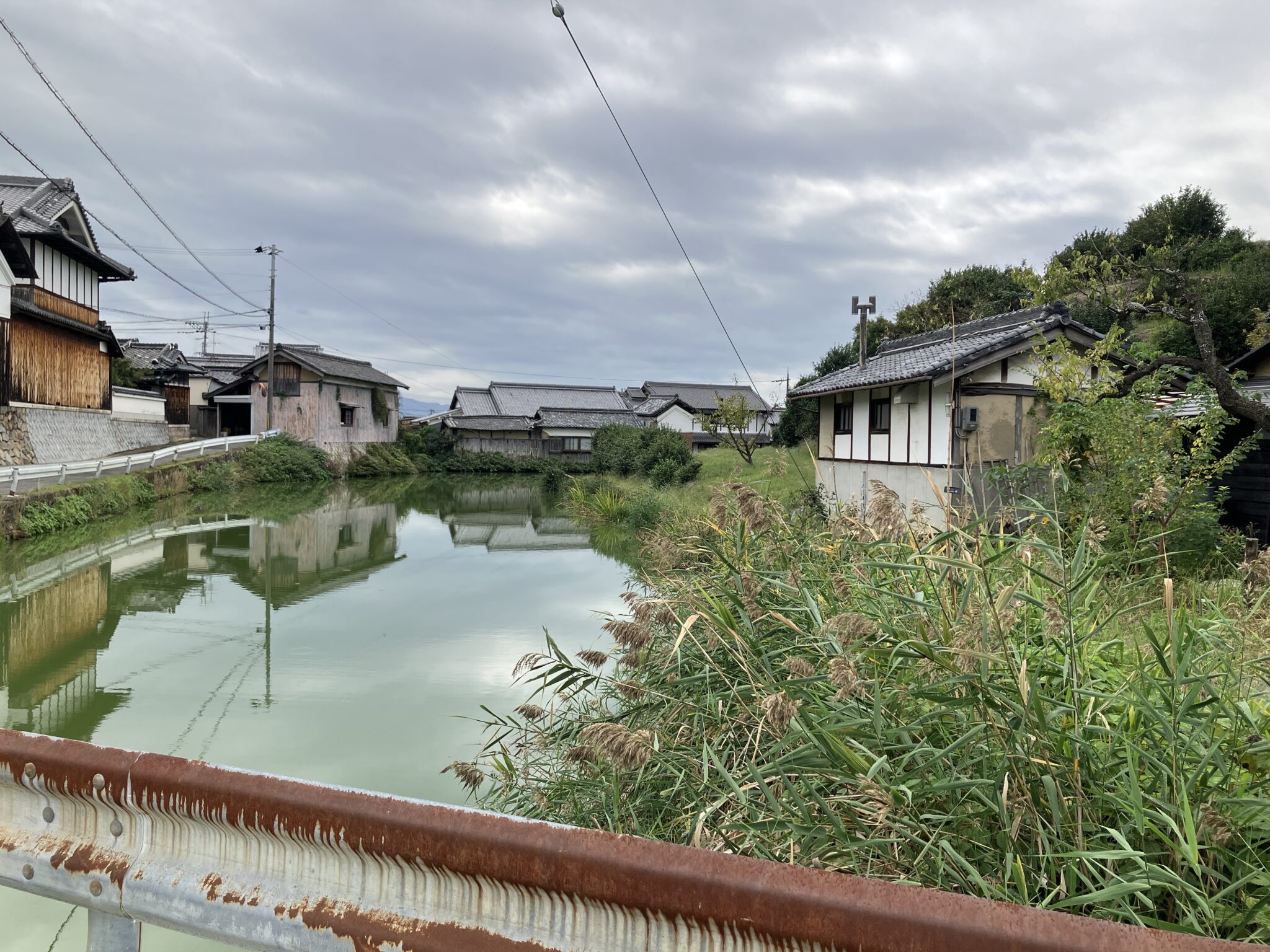 中世に外敵の侵入を防ぐため周囲に濠を巡らせた環濠集落も現存。野菜、果物などの販売所や落ち着いた佇まいのカフェも風景に寄り添うように点在していました。
