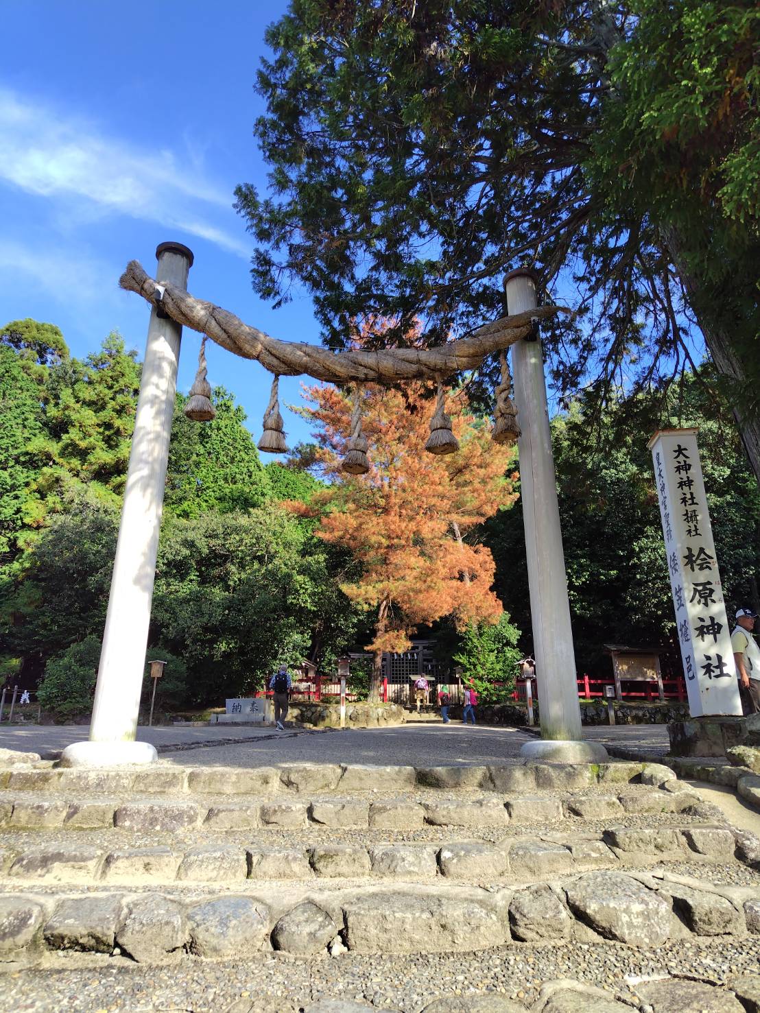 古来「神の山」と崇められてきた三輪山を御神体とする日本最古の神社で、三輪明神の名でも知られています。山の辺の道を歩くと、この大神神社に着く手前に檜原神社(ひばらじんじゃ)や狭井神社(さいじんじゃ)などの摂社があり、それぞれ古色にあふれ、趣のある佇まいを感じました。