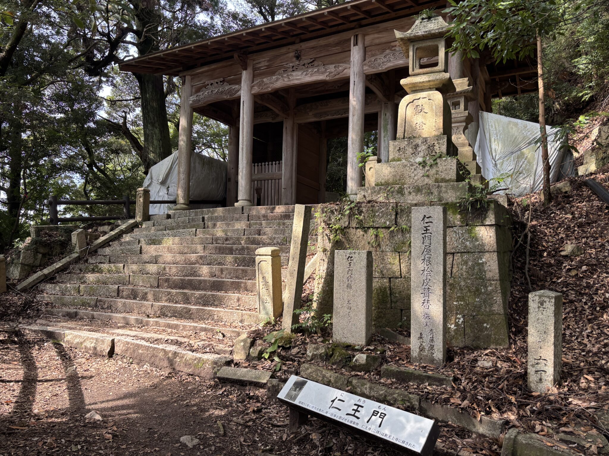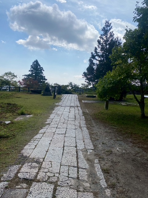 上りは、比較的歩きやすいと言われる上野道から。登山道には、イノシシの掘り返した跡がたくさんあって、「イノシシに出会いませんように」と願いながら歩きました。所々、見晴らしのよいポイントがあり、神戸の町を眺めながら休憩することができました。青谷道との合流地点から史跡公園までは約400mですが、階段が続くのでなかなかハード(>o<)掬星台からの眺望を楽しみに頑張りました。