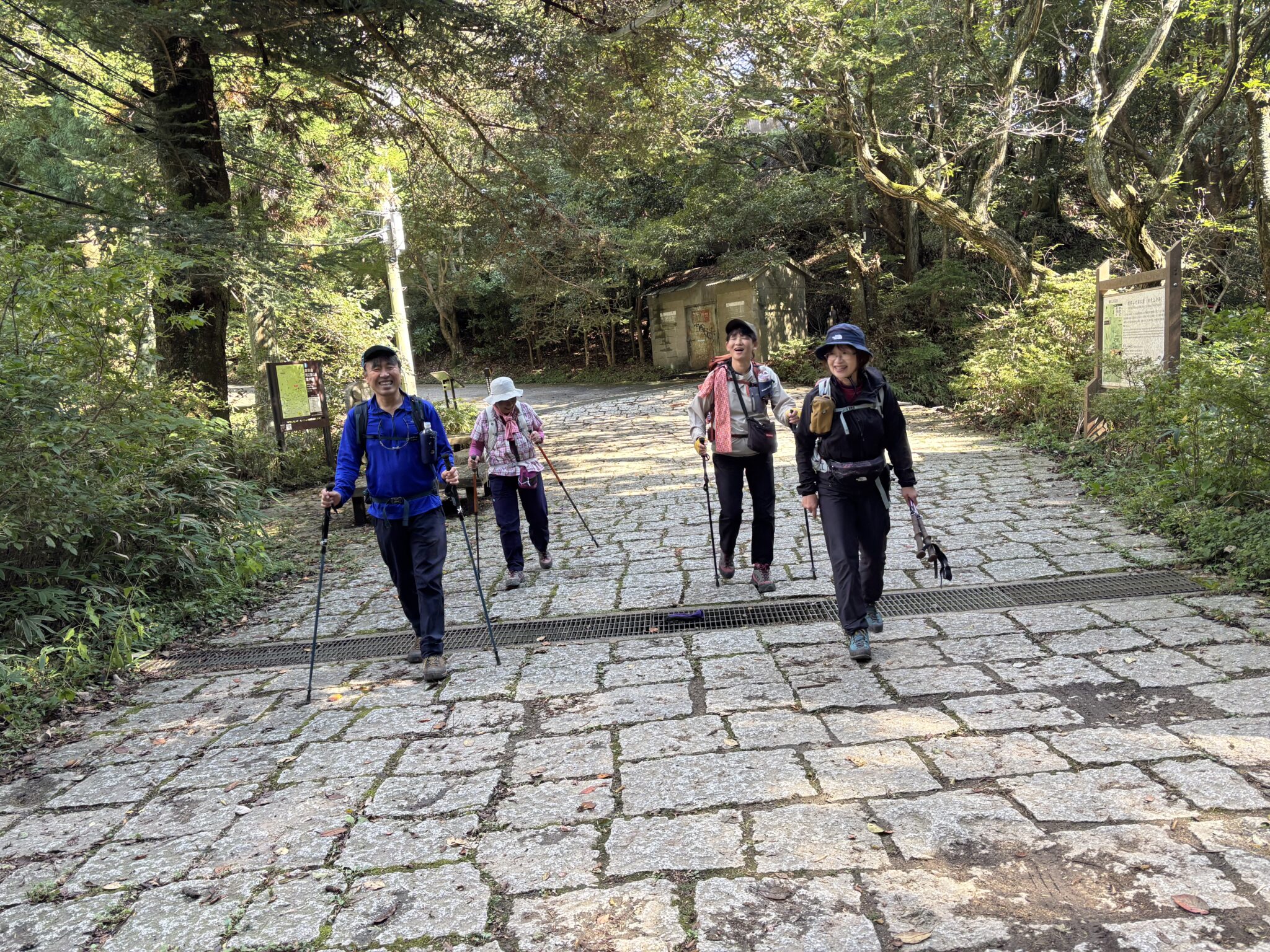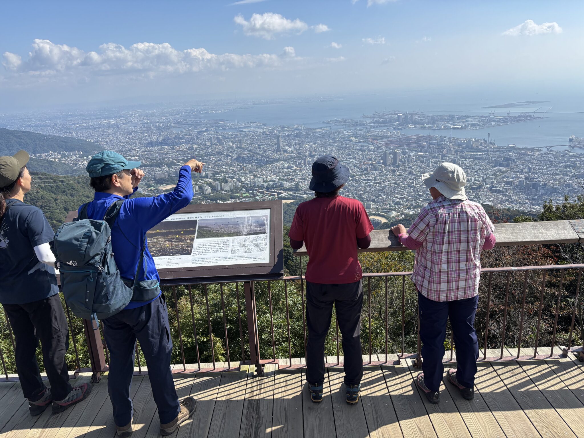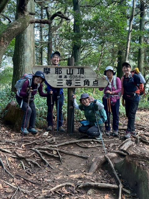 例会予定の日が雨予報だったので、日程を変更して10月27日(月)に5名で摩耶山に出かけました。福知山駅前7時発の高速バスに乗って、ゆったり気分で三宮へ🚌三宮から王子公園駅へ阪急で移動。王子公園の観覧車と青い空を見ながら舗装路を歩いて登山口へ。いきなりの町歩きと坂道に六甲山らしさを感じながらのスタートでした。