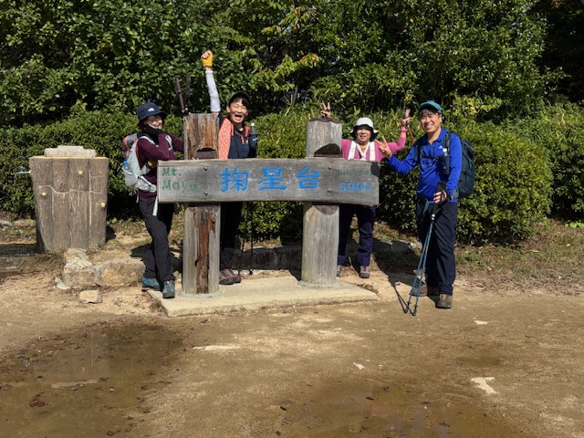 9:04王子公園スタート⇒上野道⇒11:30摩耶山⇒11:45掬星台(昼食)・・12:20下山開始⇒15:05布引雄滝⇒15:20夫婦滝⇒15:30鼓ケ滝⇒15:33布引雌滝⇒15:43滝山城跡登山口⇒15:45新神戸駅⇒16:05三宮