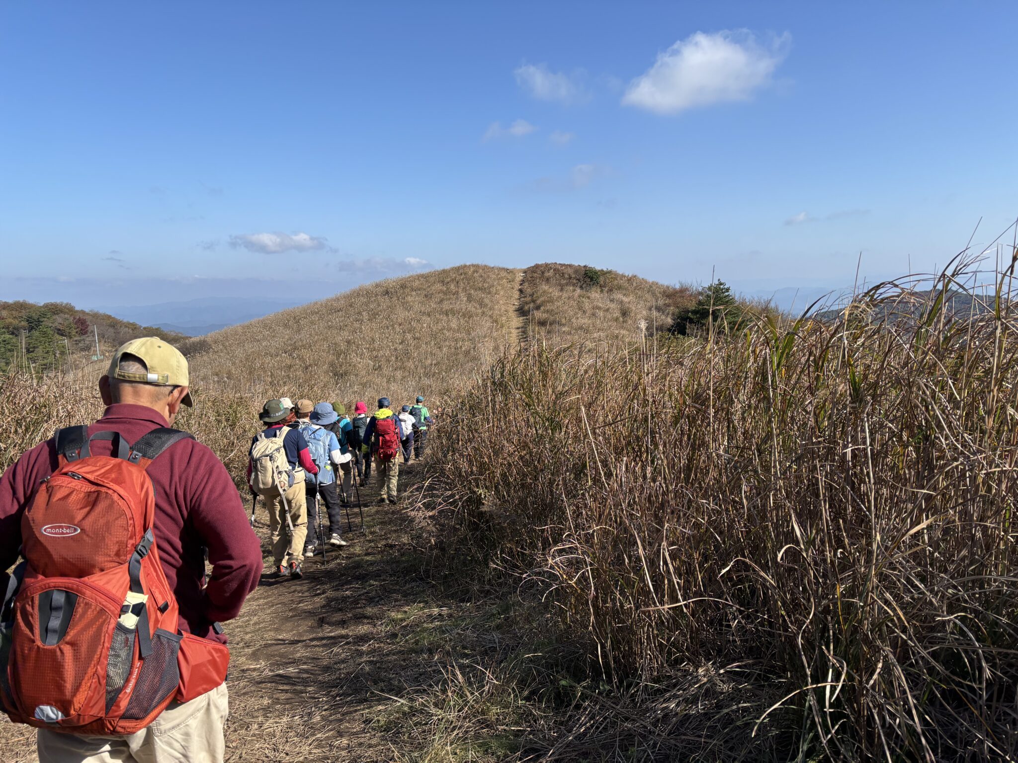 11月8日(土)2025年度の京都連盟交流会があり、るり渓の近くの「深山」(標高790.4m)に行ってきました。今回は、京都労山60周年のプレ企画ということで、府内のあちこちから約120名が参加。福知山山の会からは、13人の参加がありました。深山は、ススキとセンブリが楽しめる眺望も最高のいいお山でした。午後は、「あかまつの丘 西本梅」で全体集会があり、ヒヤリハット事例や登山寿命を飛ばす取組などについて学習をしました。