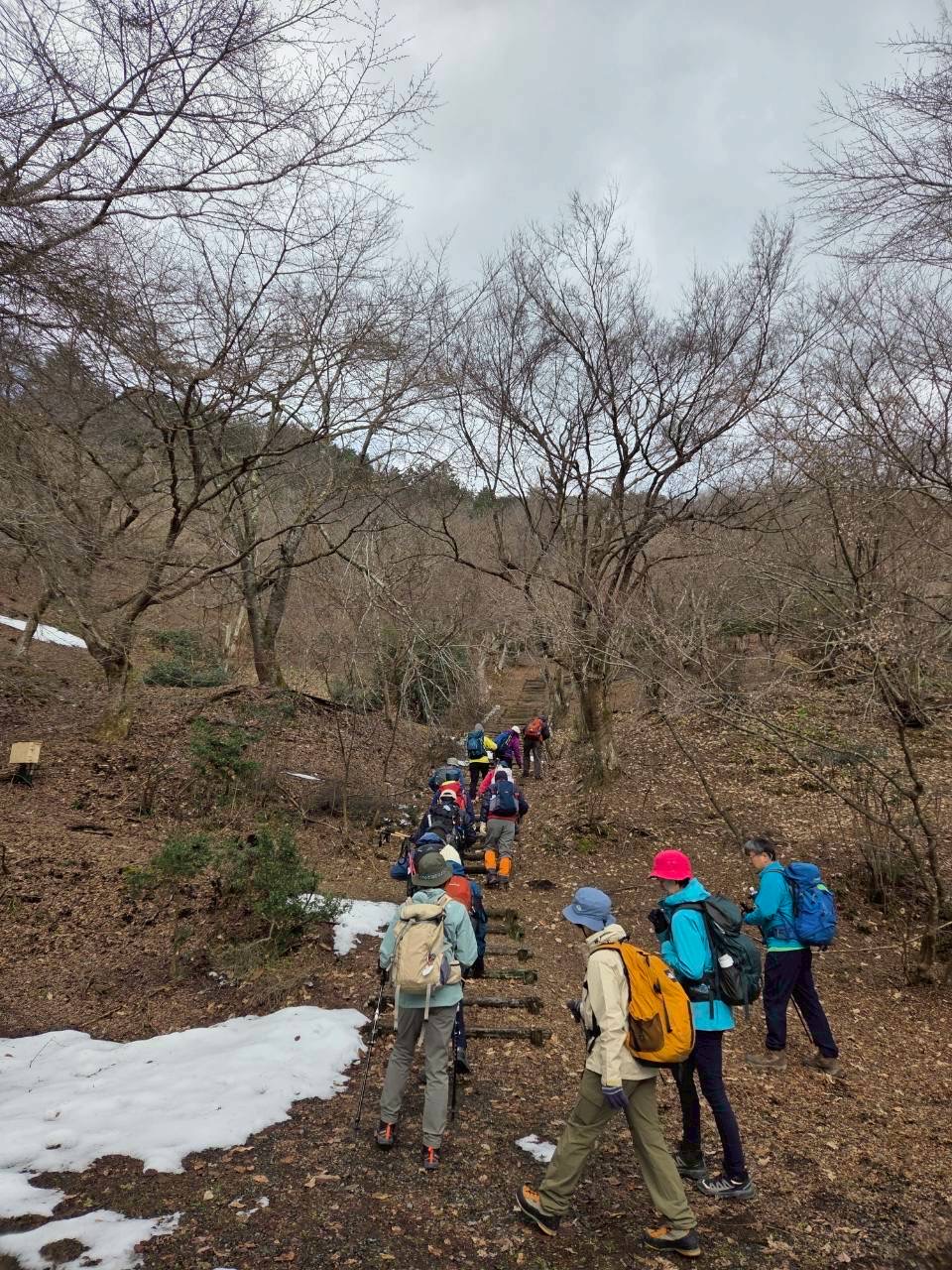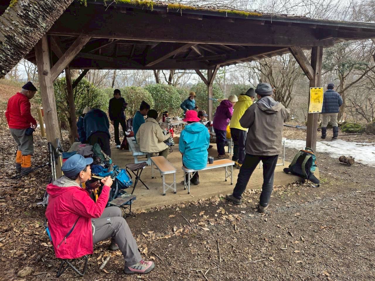 2026年のスタート・新春山行は夜久野の「宝山」へ22名で行きました。心配していた雪は所々に残っているくらいで、良い天気に恵まれ、楽しい時間を過ごすことができました。石仏をめぐりながら宝山を歩いたあとは、恒例のお汁粉や豚汁をいただきました。レク担当のアイデアで『宝山で宝探し』も楽しみ、盛りだくさんの新春山行となりました。準備していただいた皆さん、ありがとうございました。昨年、たくさんの方に入会していただき、福知山山の会は現在44名の会員となっています。今年も、安全に、そして楽しく山に登りたいものです。