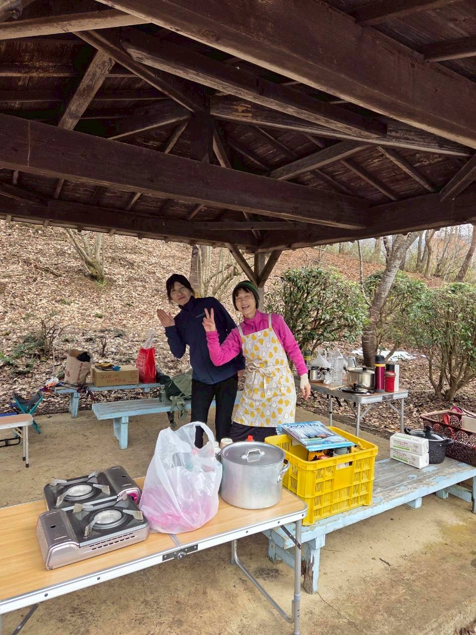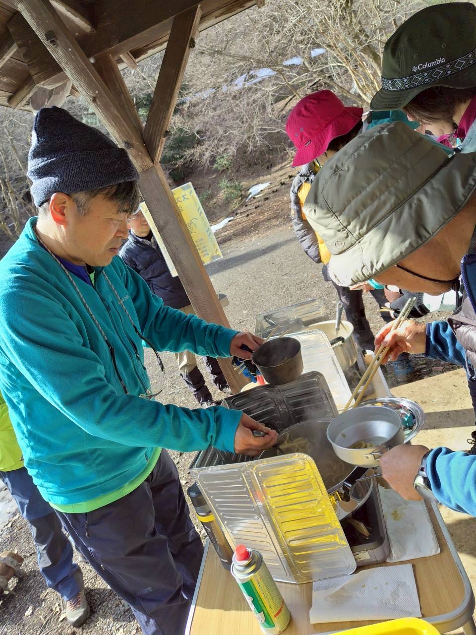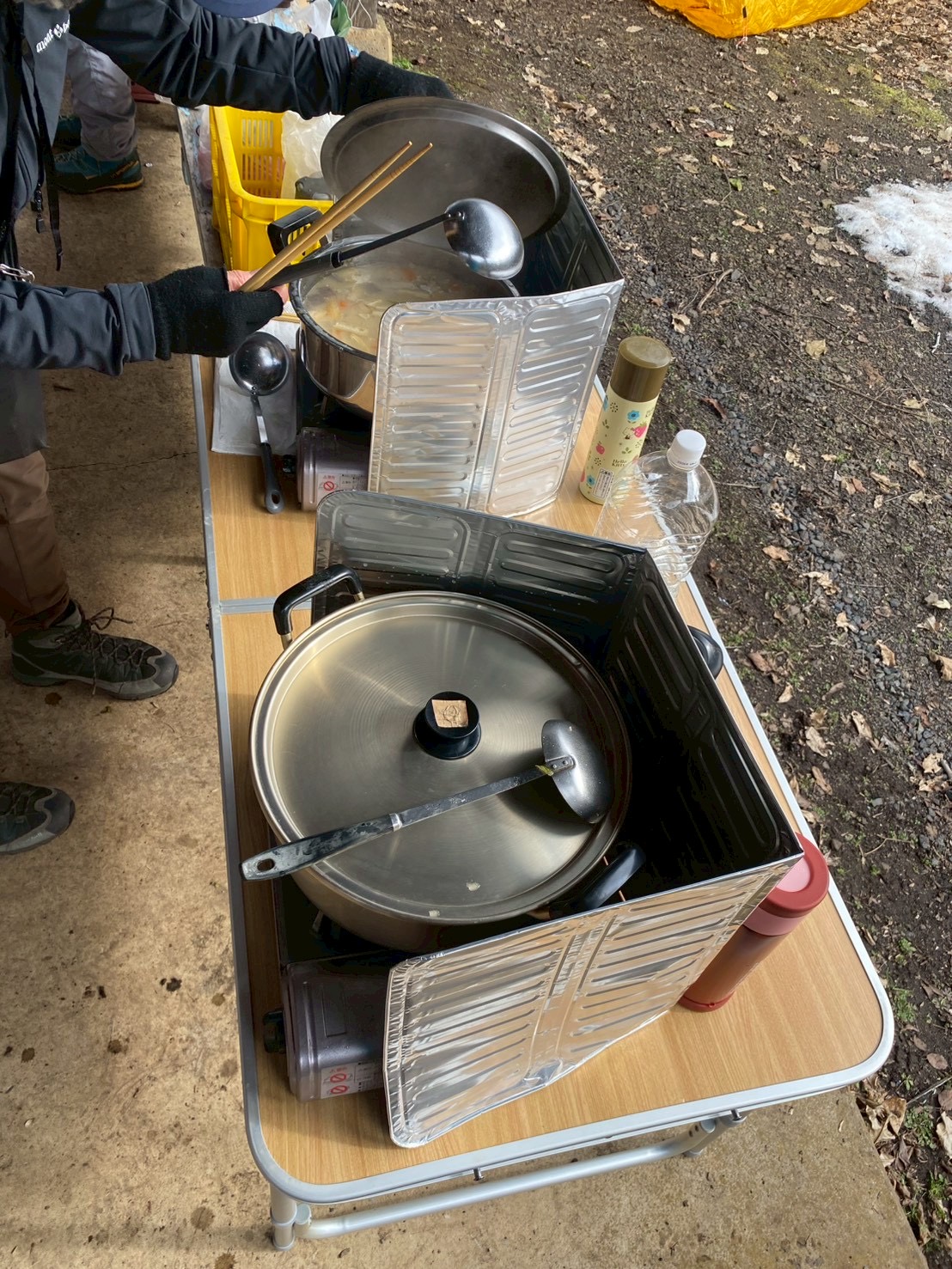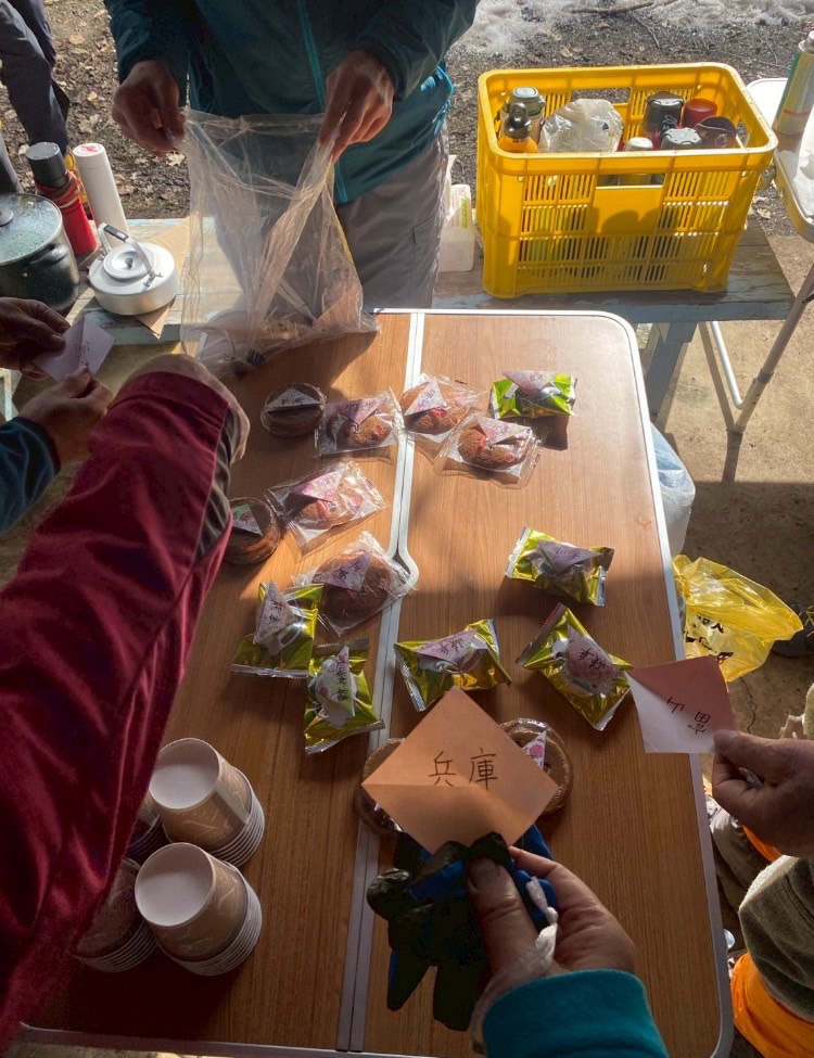 今日は、皆さんお世話になりました&ありがとうございました。初めて参加させていただきましたが、皆さんにいろいろアドバイスをもらい、楽しく登山できました。豚汁・カレーうどん・お汁粉・シフォンケーキまで、盛りだくさんでおいしかったしでびっくりしました。本当に感謝です。これからもよろしくお願いします。