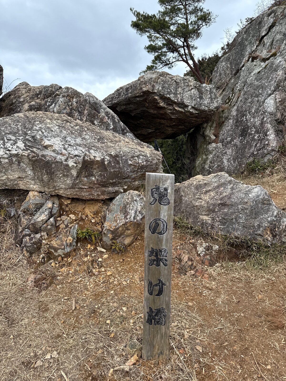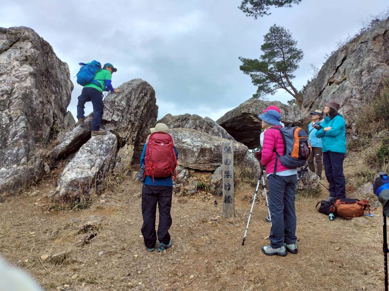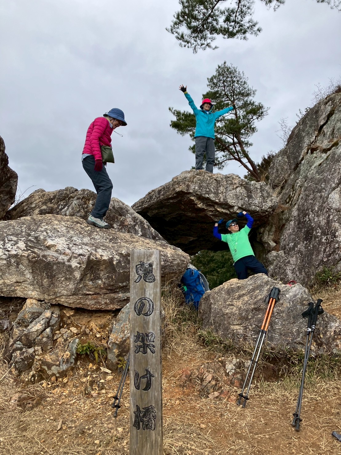 11人で丹波篠山市追入の金山に出かけました。金山は「鬼の架け橋」で有名。この架け橋は、鐘ケ坂公園あたりから左手上に望める自然石の架け橋です。金山近くの大山宮はスプリングエフェメラル(春の妖精たち)の群生地としても知られ、人気のスポットとなっています。