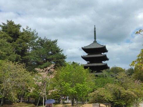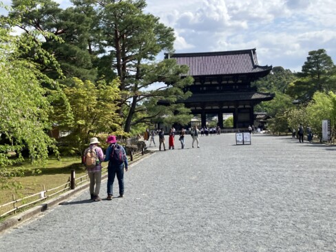 八十八ヶ所巡りを終えた後、仁和寺に戻り、約1時間、美しく広大な境内を散策する時間を設けました。残念ながら遅咲きで著名な「御室桜」も今年はその時期を過ぎていましたが、名残の八重桜に映える五重塔近辺や青紅葉が清々しいオープンカフェでお茶を楽しんだりと優雅な時間を過ごしました。