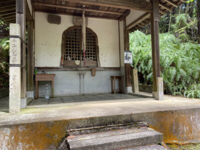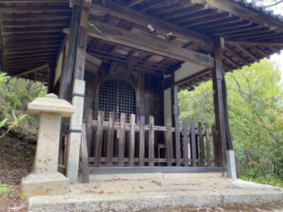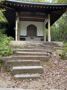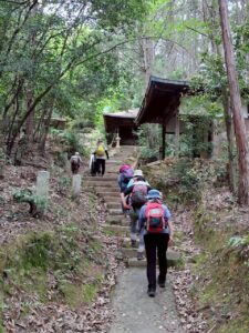 双ヶ丘を下り、住宅街を抜けると約10分ほどで仁和寺に到着しました。その裏山にあたる「成就山」に四国八十八ヶ霊場を模した札所が設けられています。その謂れは、今から200年ほど前、当時の仁和寺門跡の発願により四国八十八ヶ所を巡拝できない人々のために四国と同じお堂を立て、本尊と弘法大師を祀り、各札所の砂を埋めて再現されたそうです。