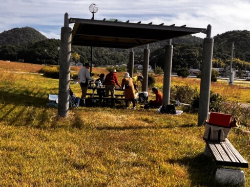 穏やかな日和に恵まれた11月10日、今年で6回目となるスケッチ企画を丹後久美浜の久美浜湾、甲山を望む「アメニティ久美浜公園」で行いました。参加者は7名、青い空と海、間近に見える里山や岬の風景を堪能しながら、思い思いの場所で構図を考えつつ、楽しくそして集中して絵に取り組みました。
