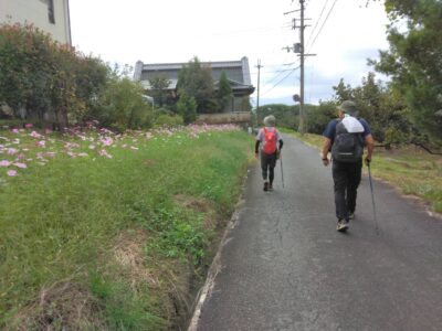 鈴なりの柿やみかん、可憐に咲くコスモスの花など、人の営みと共にあるこの道には山里の静かな時間が流れていました。